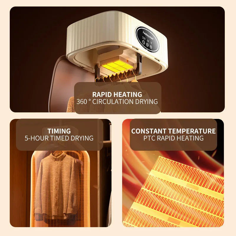 Der faltbare elektrische Wäschetrockner mit 600 W Leistung ist eine vielseitige und effiziente Lösung zum Trocknen von Kleidung, insbesondere für alle, die ständig unterwegs sind. Dieser praktische Wäscheständer ist tragbar und leicht zu verstauen und somit ideal für Reisen oder kleine Wohnräume. Er verfügt über einen leistungsstarken 600-W-Motor, der warme Luft erzeugt und so für schnelles und schonendes Trocknen der Kleidung sorgt, ohne diese zu beschädigen. Das Gerät verfügt über eine Zeitfunktion, mit der Benutzer die Trocknungsdauer nach Belieben einstellen können. Dank des faltbaren Designs ist er nicht nur kompakt, sondern auch einfach auf- und abzubauen. Ob zu Hause oder unterwegs, dieser elektrische Wäschetrockner ist perfekt, um Ihre Kleidung trocken, frisch und tragebereit zu halten.