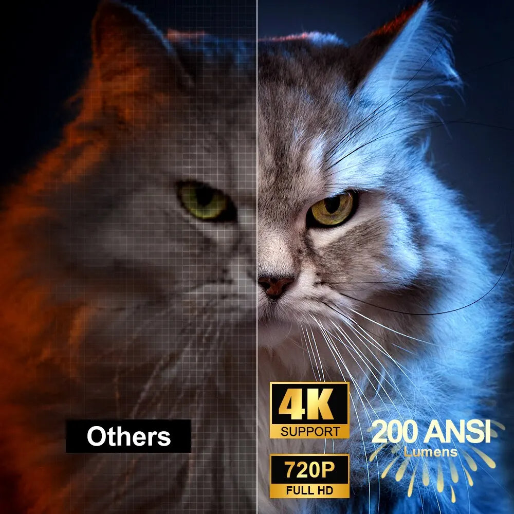 Dive into an elevated cinematic experience with the HY300 Mini Projector. While it supports up to 1080P resolution, this projector is engineered to display a crisp and clear 1280x720P, effortlessly enhancing your movie nights. The incorporation of Android 11 ensures a smart and intuitive user interface, giving you access to a plethora of entertainment options at your fingertips. With the latest WIFI6 technology, experience faster and more reliable connections, perfect for smooth streaming. The Bluetooth 5.0 compatibility offers hassle-free connectivity to your devices, letting you wirelessly stream content and control the projector with ease. Although it's designed compactly for easy portability, this projector is ideal for both cozy indoor settings and grand outdoor displays. Whether you're turning your living room into a home theater or projecting under the stars, the HY300 ensures you're never too far from premium entertainment. Note: While the HY300 can display content from 4K sources, its native resolution is 1280x720P.